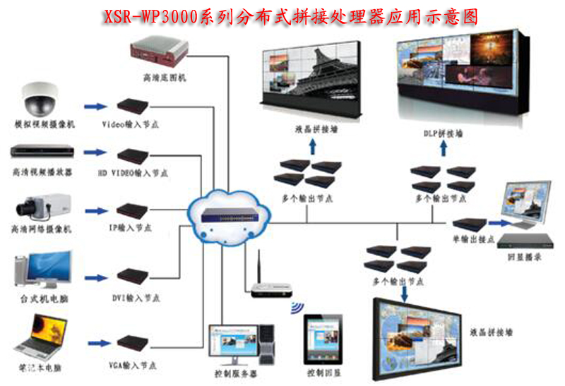 新視銳XSR-WP3000系列分布式拼接圖像處理器典型應用示意圖: