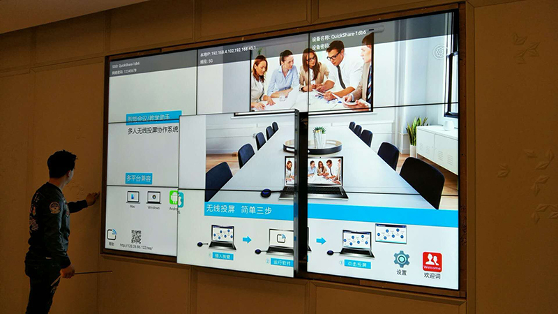 1.手機/平板/PC等可無線上大屛,大屏幕可任意拼接組成大屏幕顯示樓盤內容。