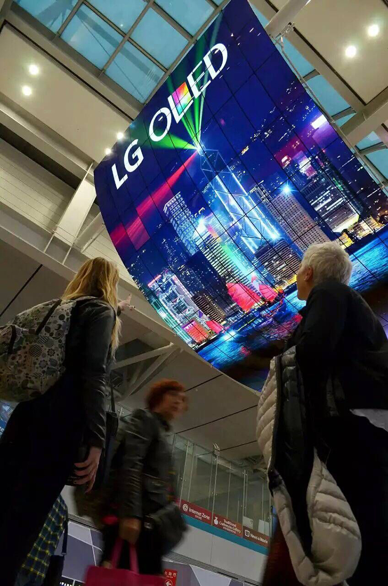 韓國LG顯示技術(shù)領(lǐng)域在亞洲都名列前茅,其在OLED有機發(fā)光二極管技術(shù)上更是獨占鰲頭,為彰顯0LED拼接屏技術(shù)成果,在仁川國際機場安裝了一塊10X14共140塊超大超窄的OLED拼接大屏幕,總面積達104平方米,堪稱拼接之最(拼接的最大屏幕)。