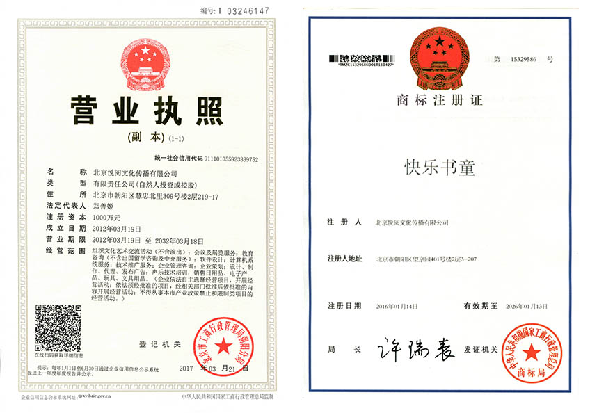 悅閱文化傳播(延邊)有限公司(以下簡稱“悅閱文化”)是北京悅閱文化傳播有限公司,成立于2012年的一家專門致力于兒童教育類項目加盟事業的公司。公司總部坐落于首都北京,注冊資金1000萬人民幣。我們力爭做國內兒童教育領域里最有創意,最科學的兒童教育加盟公司。我們從韓國、日本、英國、美國等知名公司引進最成功的項目,造福于中國的孩子,因為中國的騰飛在孩子身上,而孩子的騰飛關鍵在于正確有效的教育!